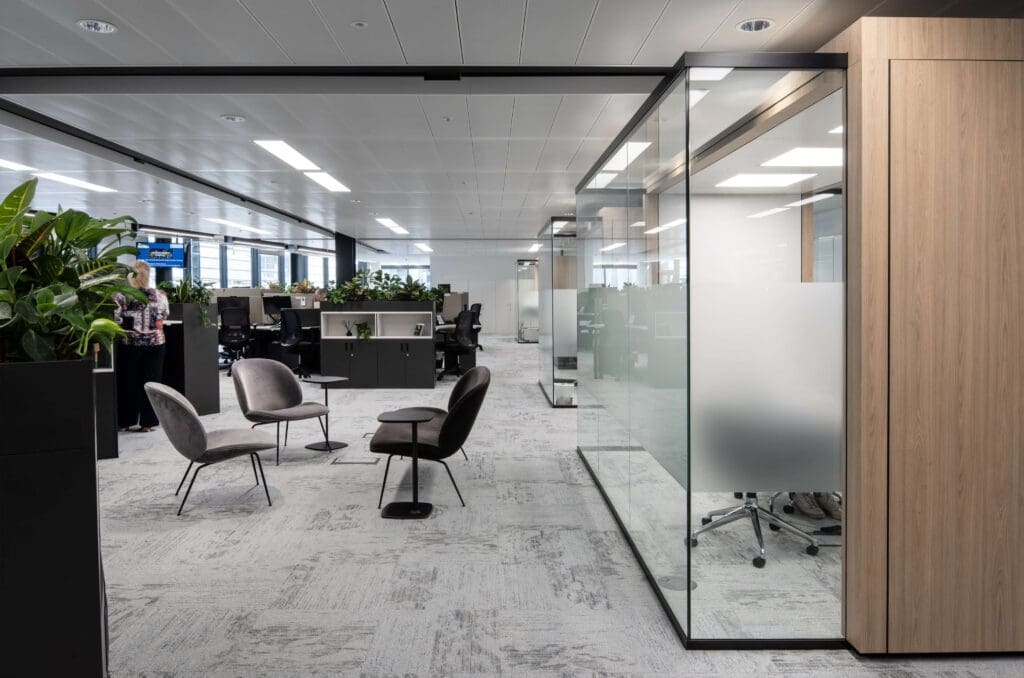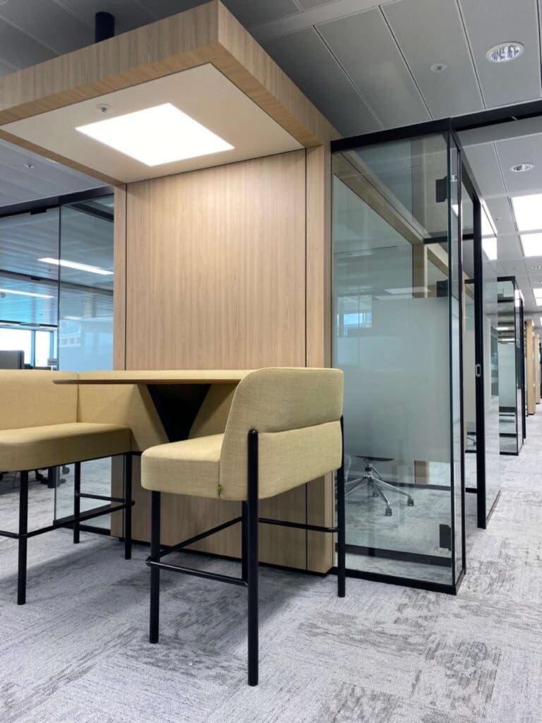 The project was driven by a commitment to sustainability and Design for Disassembly (DfD), with two strategic relocations designed to create a modern, flexible workplace that supports hybrid work, enhances client experience, and reflects the client’s evolving culture.